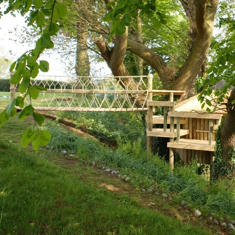 A treehouse project set into an 'extreme' and adventurous location is made seamless in the family garden with a beautiful fixed-beam Rope Bridge.